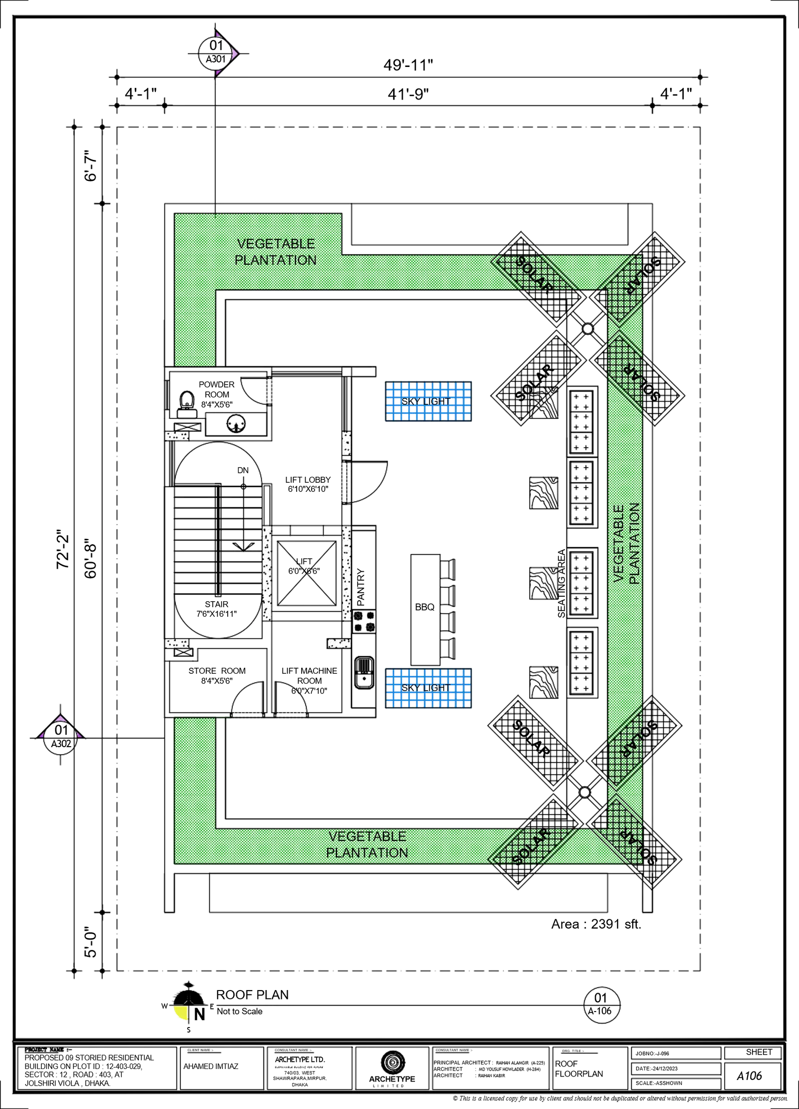 Innovative rooftoop garden & solar system with BBQ corner, party place