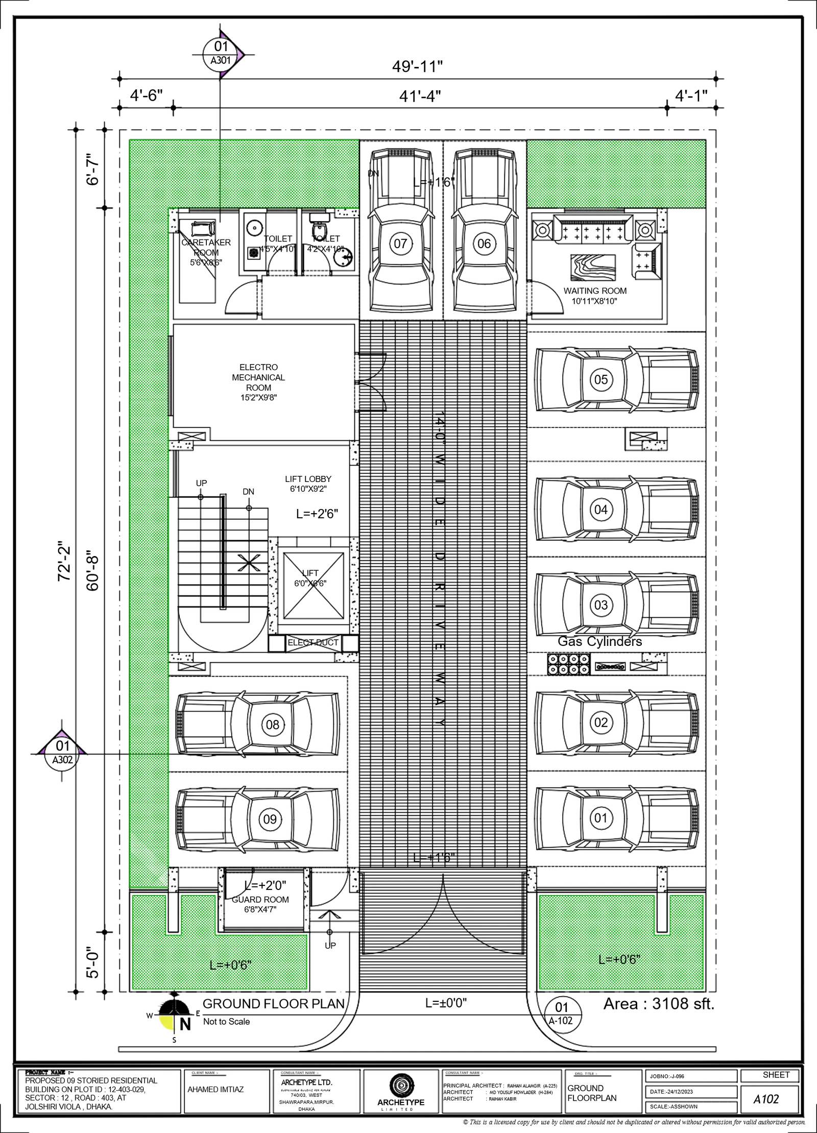 Reserved car parking in a covered and protected ground floor for residents with comfortable driveways, alongside a separate driver’s waiting room (as per design).